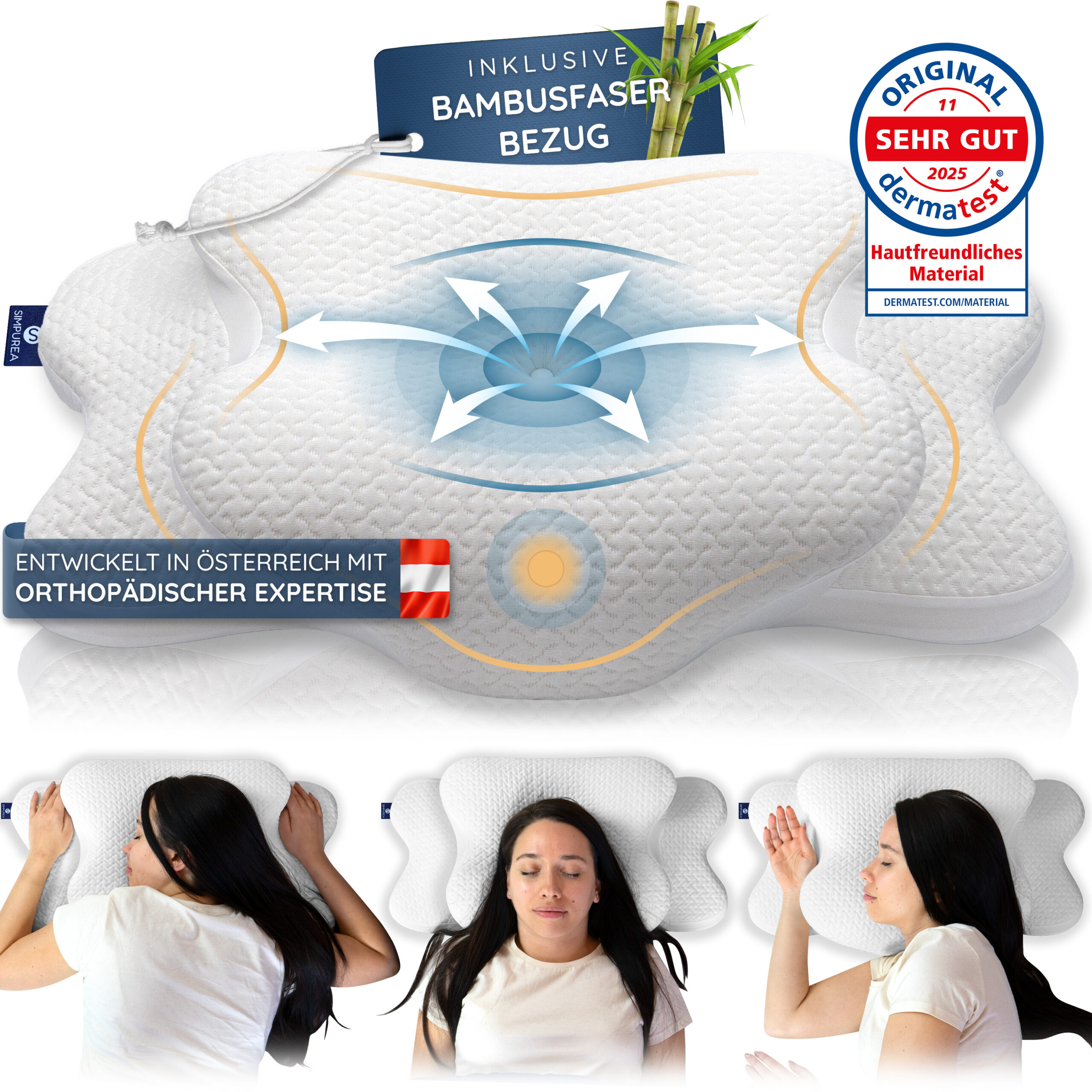 Für das SIMPUREA Kopfkissen „Bamboo“ wurde eine umfassende Serie an Produktbildern konzipiert und umgesetzt, die Funktion, Material und Markenaussage klar kommuniziert. Ziel war eine ruhige, natürliche und vertrauensvolle Bildsprache, die die Werte der Marke – Komfort, Ausgeglichenheit und Qualität – visuell transportiert.