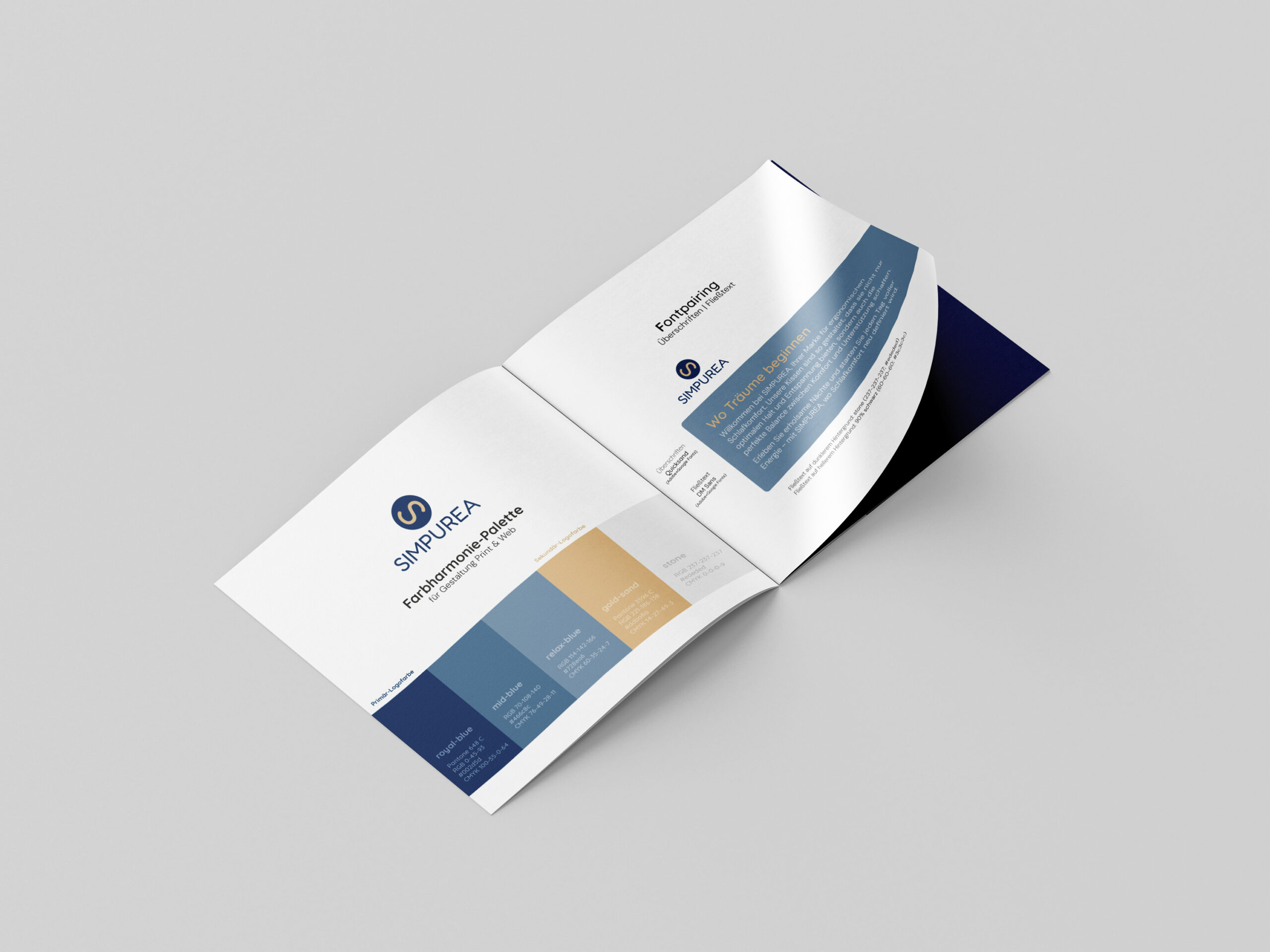 Für die Marke SIMPUREA wurde ein umfassendes Corporate Design entwickelt, das den Anspruch an Qualität, Ruhe und Komfort visuell transportiert.